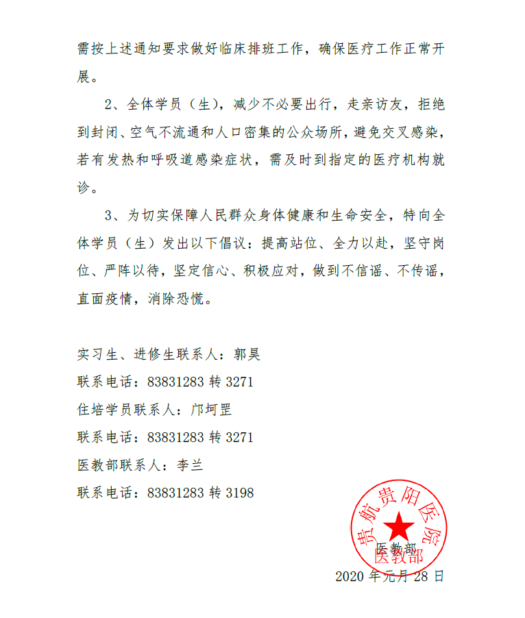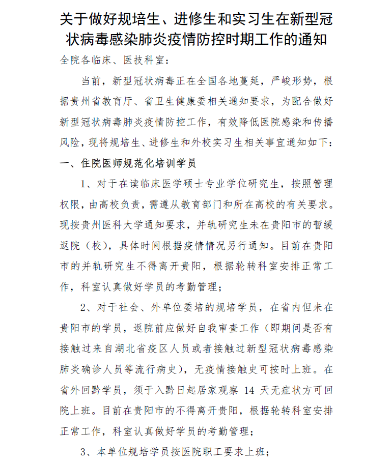 【通知】關于做好規培生、進修生和實習生在新(xīn)型冠狀病毒感染肺炎疫情防控時期工(gōng)作(zuò)的通知